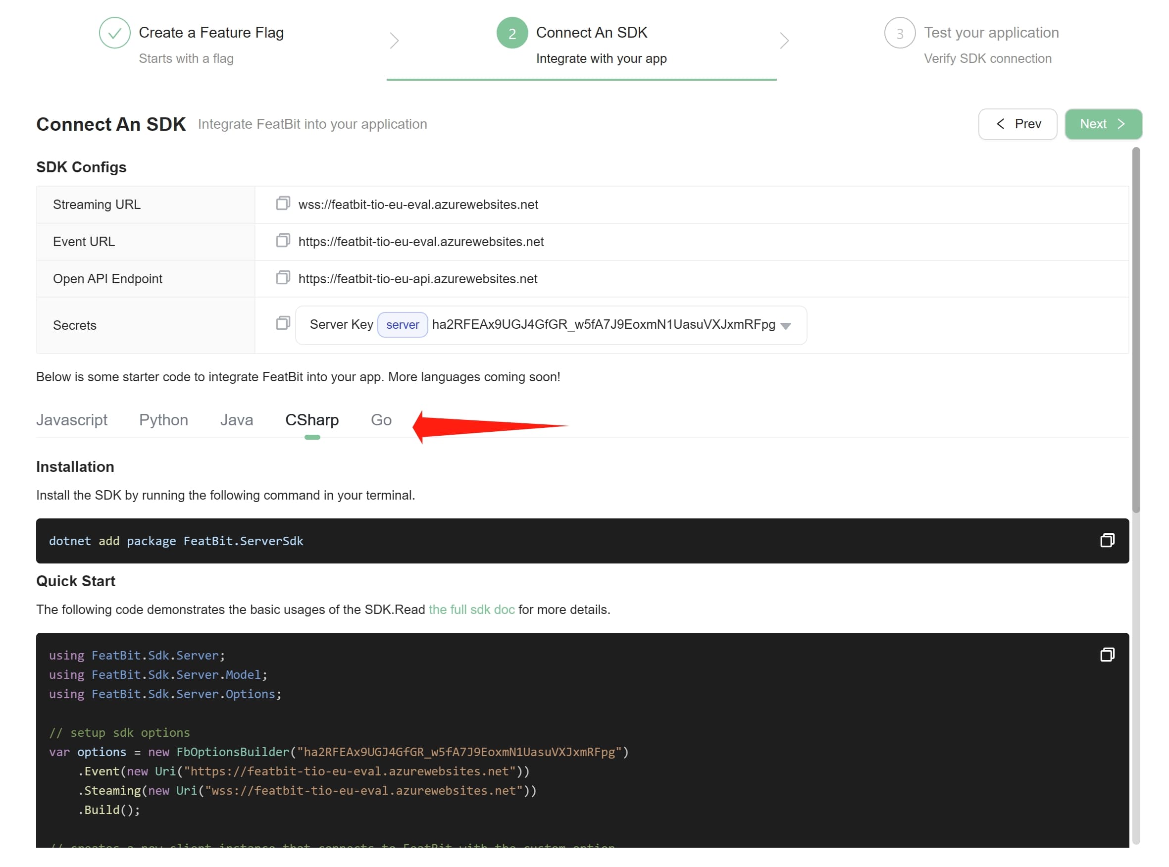 Step 1. Select one of the feature flags you just created in the previous step. Then click the "Next" button to go to step 2.
